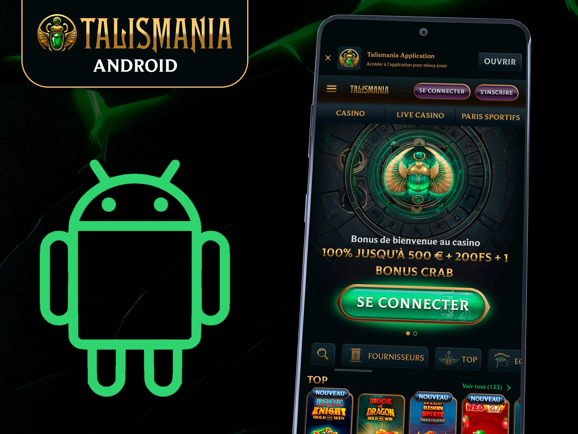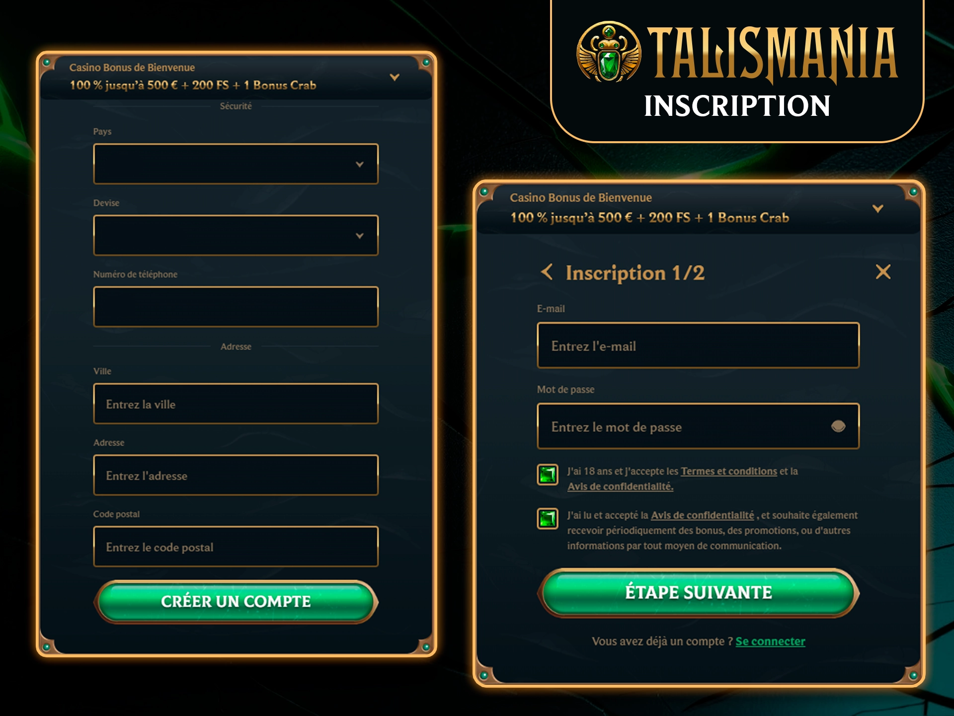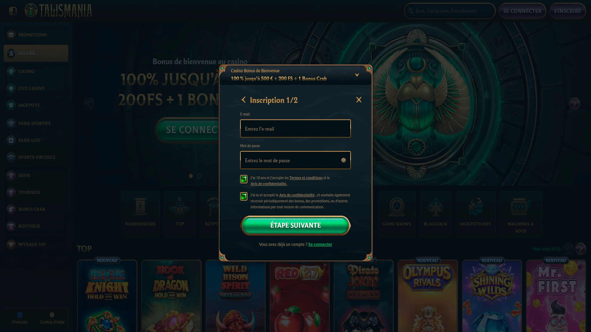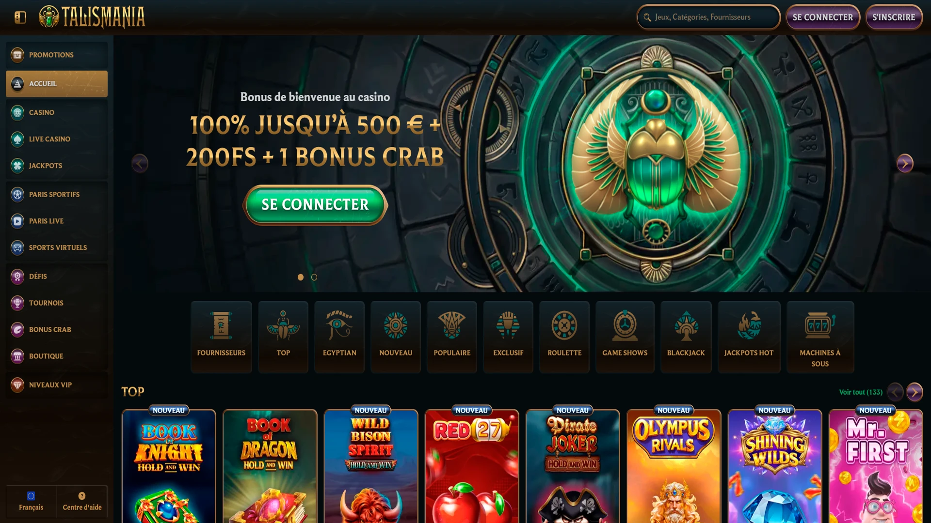 100 % jusqu’à 500 € + 200 FS + 1 Bonus Crab