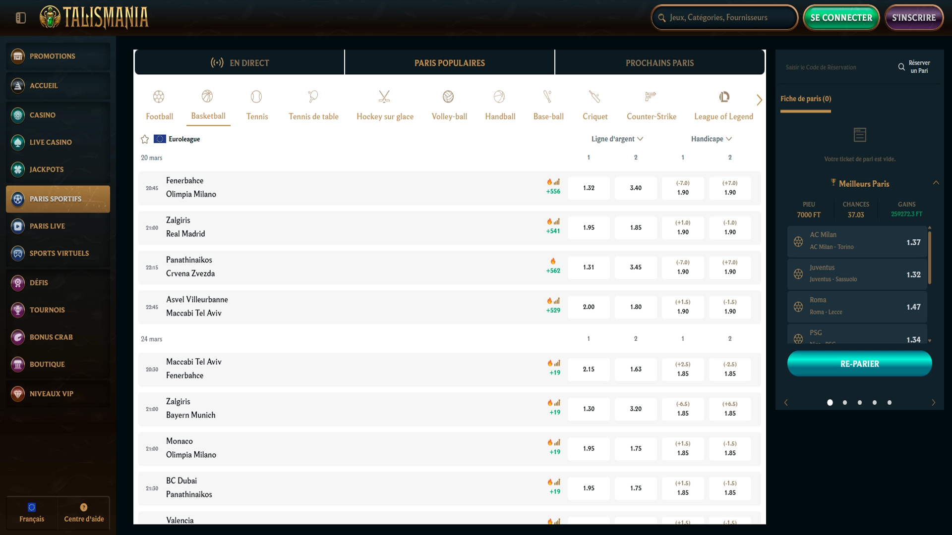 Vérifie les cotes et valide ton pari.