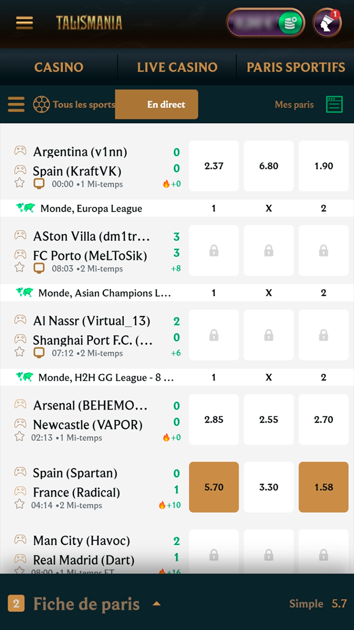 Le live te permet de réagir aux matchs en cours sur football, tennis, basketball, eSports et plus. Tu profites de mises dynamiques, d’un coupon rapide, du Cash Out et de statistiques pour mieux évaluer les cotes en temps réel.