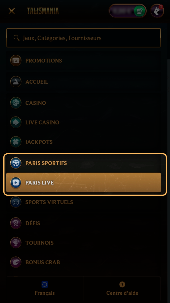 Ouvre Sports ou Live.